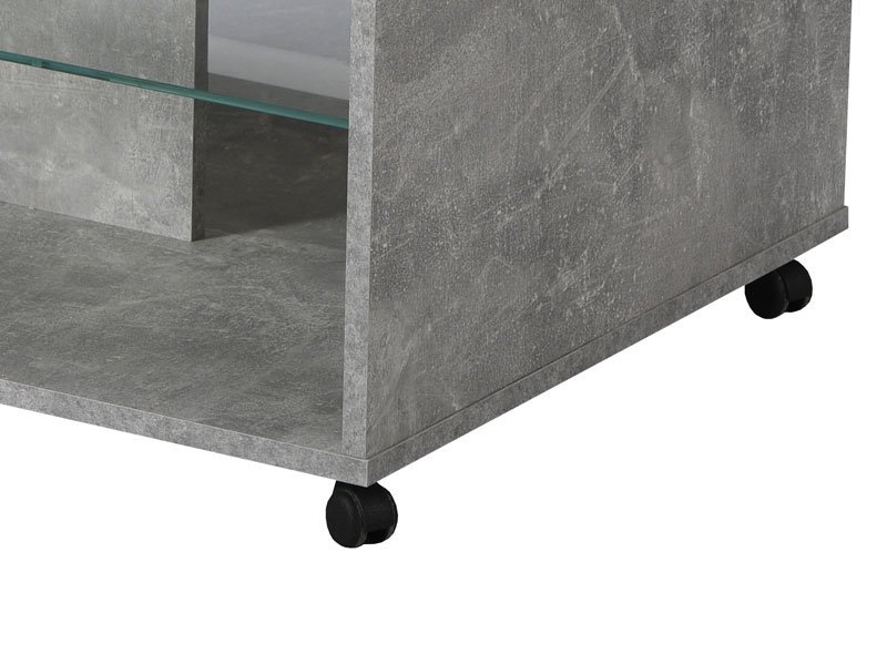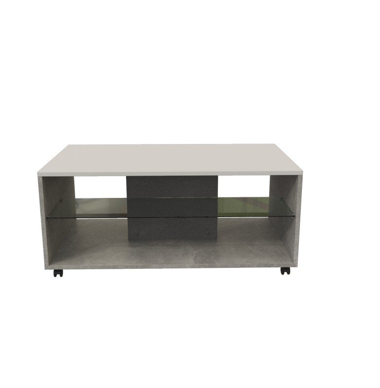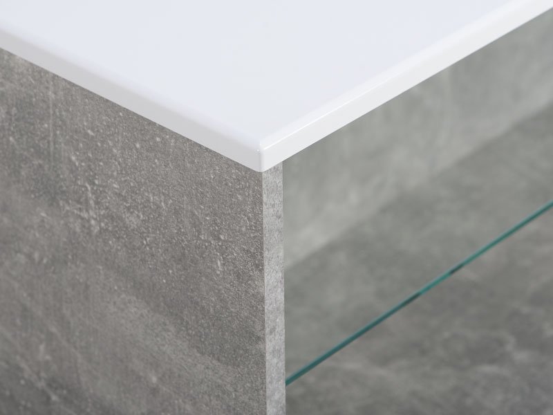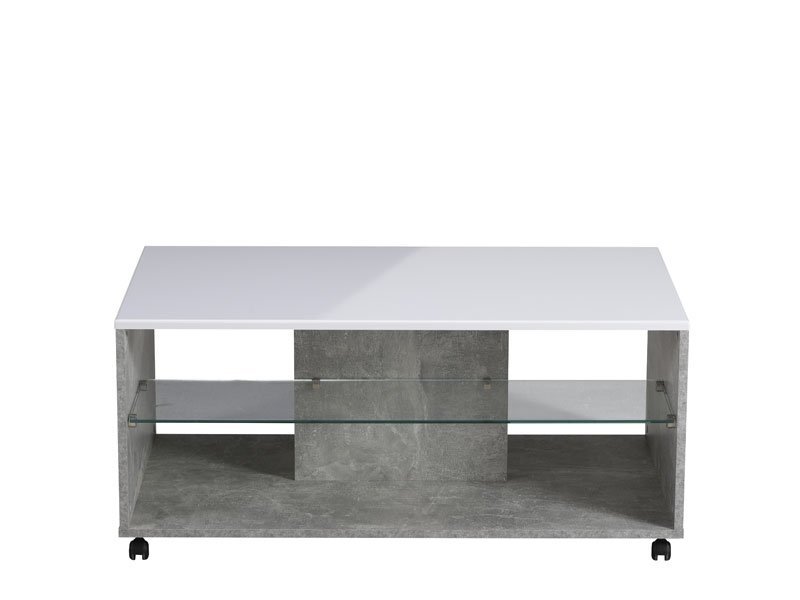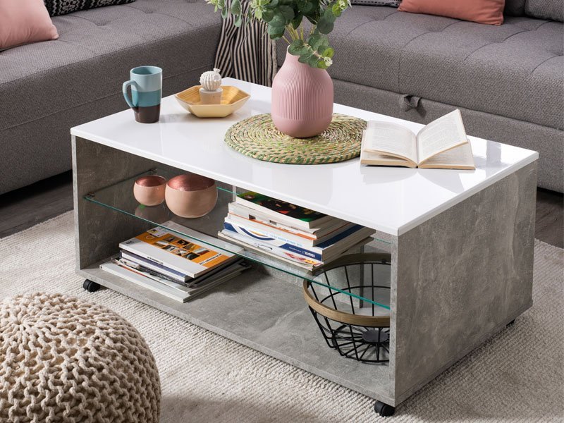 Klub sto BERT, u dekoru betona sa belom lak folijom, poseduje praktične i estetske efektne staklene police ispod radne površine pogodne za odlaganje omiljenih knjiga ili časopisa. Klub sto BERT doprinosi savremenom tematskom konceptu uređenja dnevnog boravka.