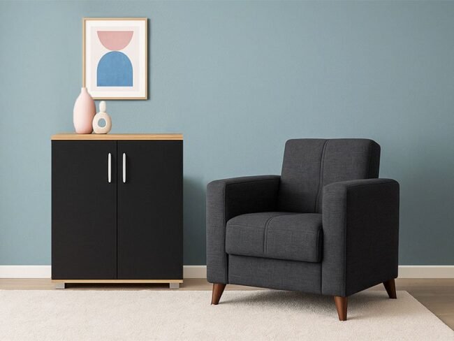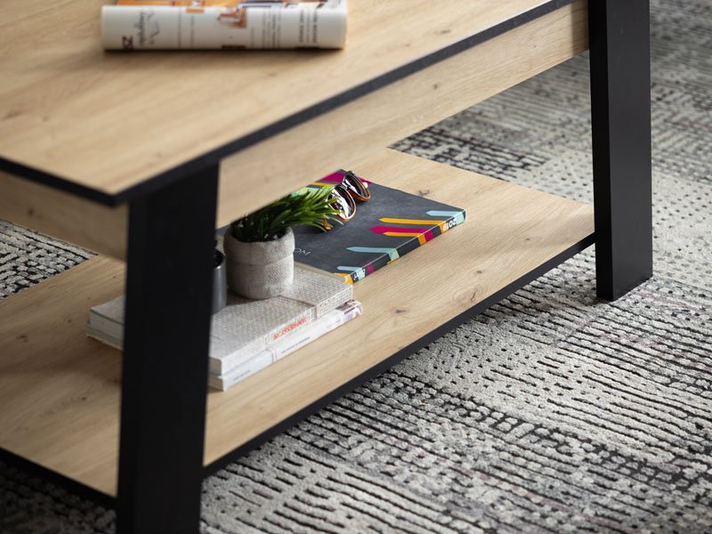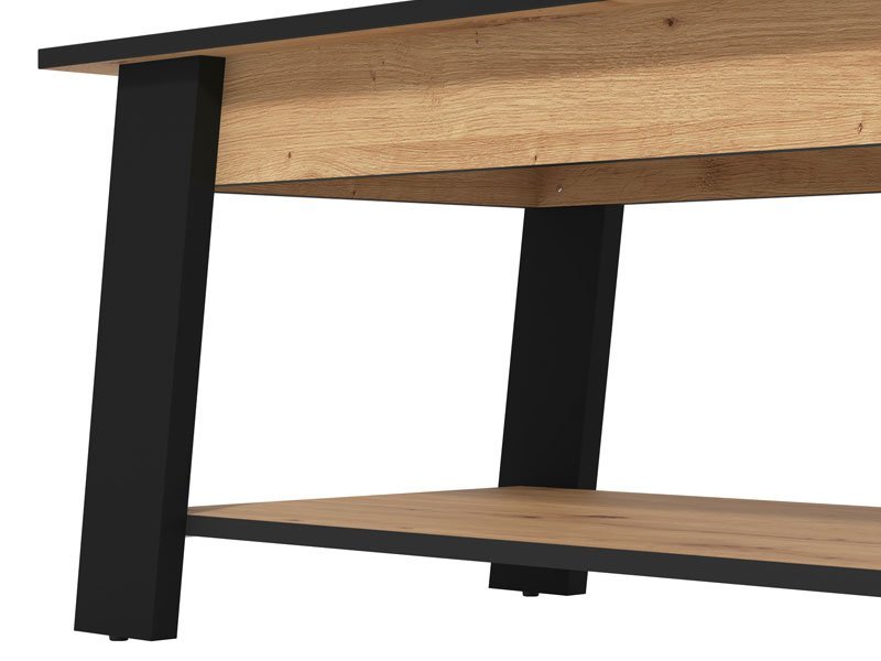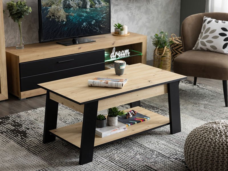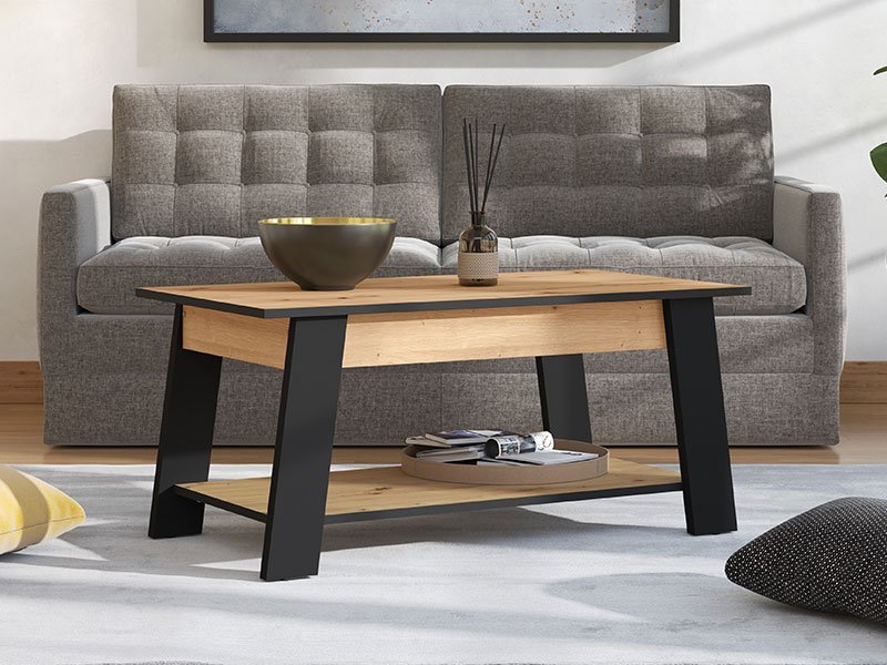 Klub sto PIAVE u kombinaciji dekora artisan hrasta i crne mat folije pravi je predstavnik modernog enterijerskog izraza i kao takav pravo je rešenje za funkcionalno i estetski dopadljivo uređenje životnog prostora. Pored blago iskošenih nogara, dominantan detalj u izgledu ovog klub stola je polica u ispod radne površine, pogodna za odlaganje omiljenih knjiga ili časopisa.