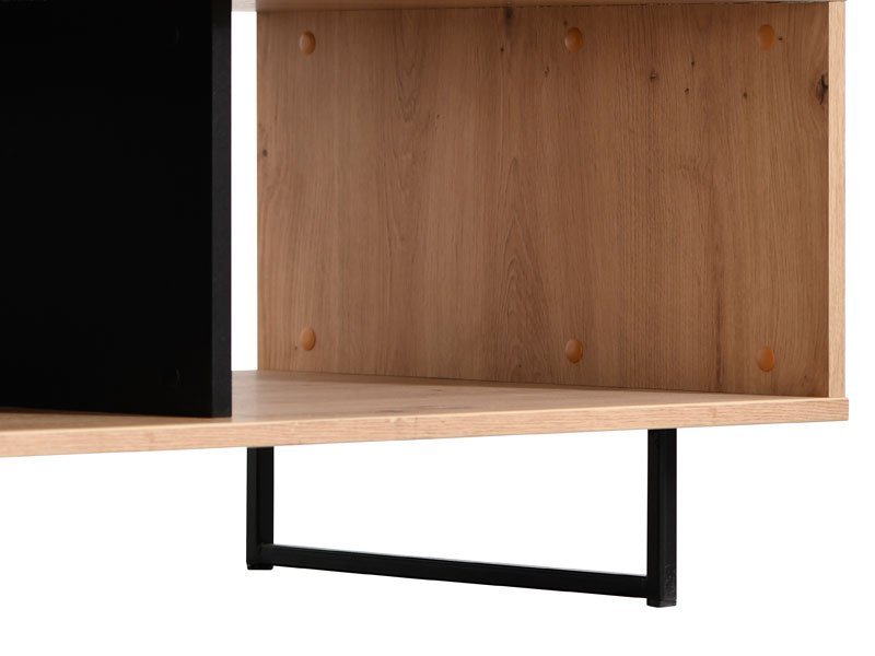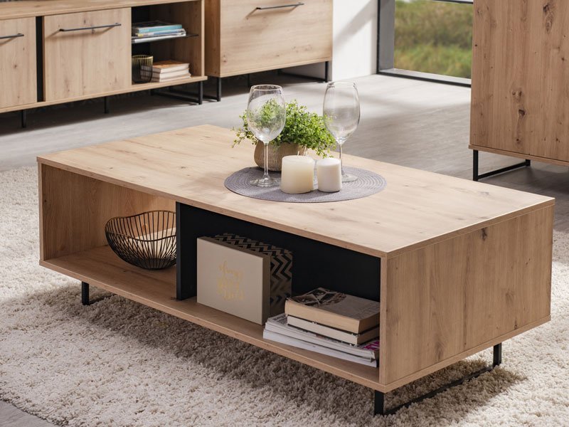 Klub sto SARDINIA, u kombinaciji artisan hrasta i crnog dekora, deo je istoimene kolekcije sa kojom čini enterijersku celinu, a koja u vaš dom unosi odraz autentičnog i odvažnog životnog stila. Svojim izgledom će doprineti da vaš dom bude opremljen po najnovijim enterijerskim standardima. Raspored pregrada ispod radne površine doprineće da prostor za odlaganje časopisa ili knjiga bude maksimalno iskorišćen.