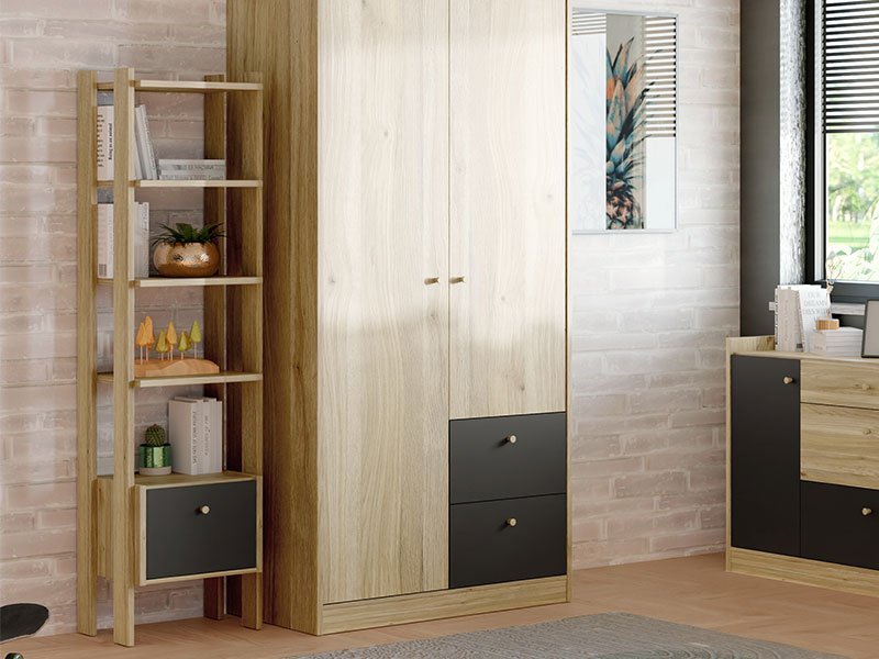 Tačan naziv dezena: korpus iverica Mauvella hrast, front iverica Mauvella hrast/crna. Otvorena polica COXIM deo je istoimene kolekcije za opremanje dečije sobe a upotrebni prostor čine četiri otvorene police i jedna prostrana fioka.