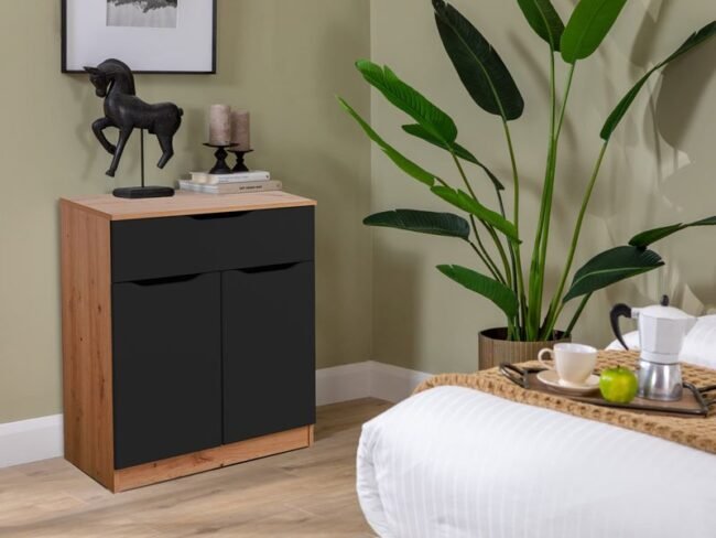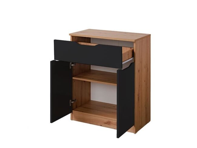 Tačan naziv dezena: konstrukcija metal crna, ploča iverica sonoma. Otvorena polica STAR unosi jedinstvenu estetiku u koncept životnog prostora zahvaljujući efektnom spoju polica u sonoma dekoru drveta i konstrukcije u metal crnom dekoru. Donosi mogućnost zanimljivih enterijerskih ideja, uz puno prostora za izlaganje koji je organizovan na pet polica.
