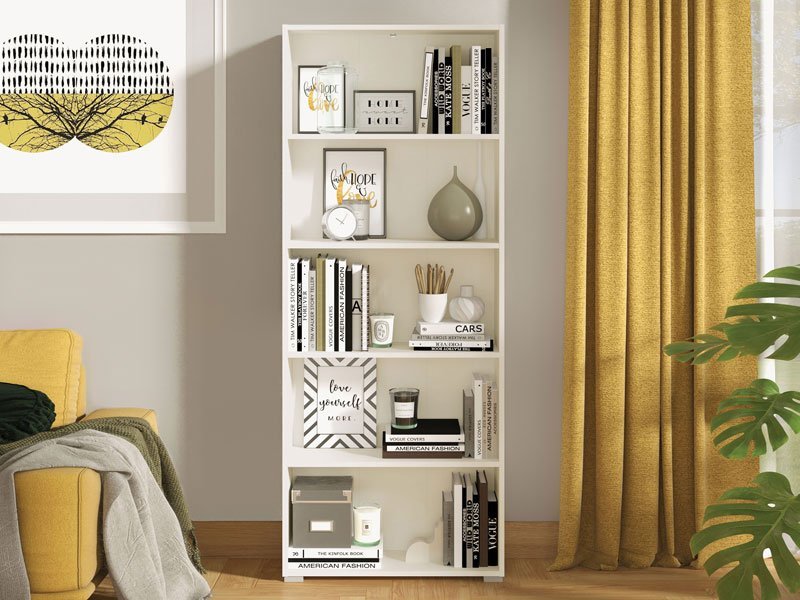 Funkcionalni model otvorene police TOMAR 5, u opak belom dekoru, sadrži pet posebnih polica i veoma efektno će se uklopiti u raznim tipovima enterijera.