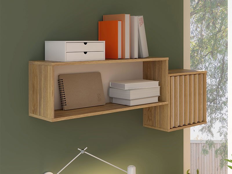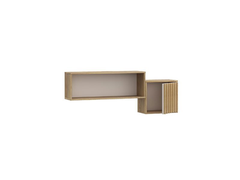 Tačan naziv dezena: korpus iverica Mauvella hrast, front iverica / mdf Mauvella hrast/boja peska, zidna polica MAVELL je modernog dizajna i odlikuju je funkcionalnost i atraktivnost, kao i odlična uklopivost u enterijere industrijskog stila.