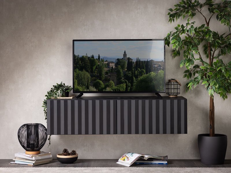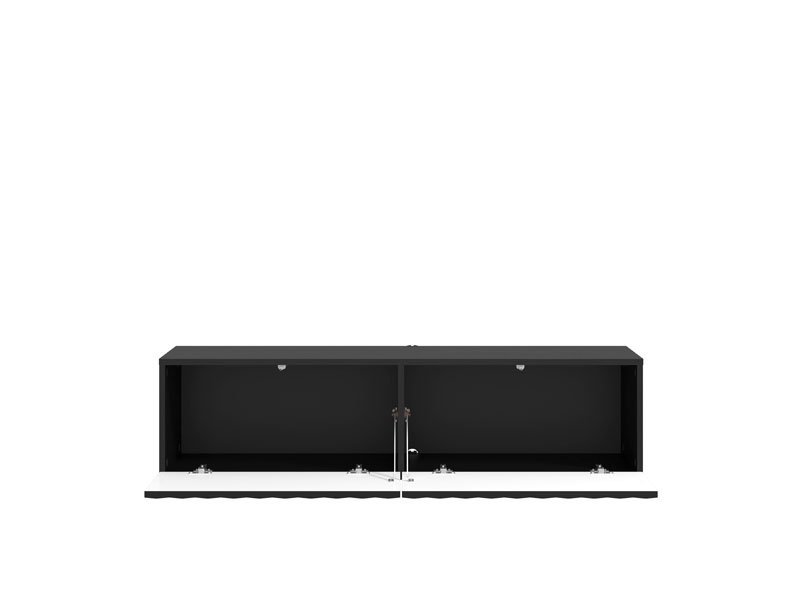 TV polica ANTIBES 128 TV 2K2V u kombinaciji crnog dekora sa teksturom i crne mat folije, namenjena je opremanju dnevnog boravka i odlikuje je savremen dizajn, kao i istaknuta estetska nota. Funkcionalan je komad nameštaja koji će se idealno uklopiti u ambijente modernih domova. Upotrebni prostor čine dva zatvorena pregradna dela. TV polica ANTIBES 128 TV 2K2V je model konzolne TV police, koje spadaju u najzastupljenije trendove u dizajnu pločastog nameštaja.