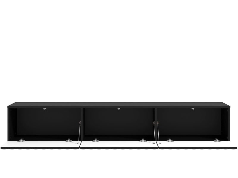 TV polica ANTIBES 192 TV 3K3V u kombinaciji dekora crne i crne mat folije, namenjena je opremanju dnevnog boravka i odlikuje je savremen dizajn, kao i istaknuta estetska nota. Funkcionalan je komad nameštaja koji će se idealno uklopiti u ambijente modernih domova. Upotrebni prostor čine tri zatvorena pregradna dela. Postoji mogućnost dodavanja rasvete . *Napomena: cena je bez led rasvete.