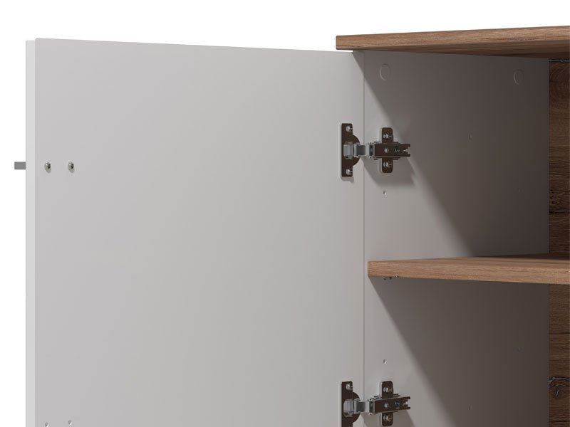 TV policu BURGUNDY TV 160 3K2V u kombinacija toplog dekora flagstaf hrasta i bele lak folije. Predstavlja novi nivo estetske odvažnosti koja odlikuje najsavremenije domove, dok metalne ručice unose dodatnu ozbiljnost u dizajn ovog sistema elemenata. Dva bočna zatvorena segmenta, kao i otvoreni deo sa staklenom policom, efektno doprinose funkcionalnoj organizaciji dnevnog boravka. Postoji mogućnost dodavanja rasvete, a zatvoreni pregradni delovi odlikuju se „soft close“ sistemom zatvaranja.  Deo je istoimenog sistema elemenata za opremanje dnevnog boravka jednostavne dizajnerske forme, koja daje jasnu definiciju enterijeru. *Napomena: Cena bez rasvete – Mogućnost dodavanja rasvete. Preporučujemo Set LED rasvete Ra2