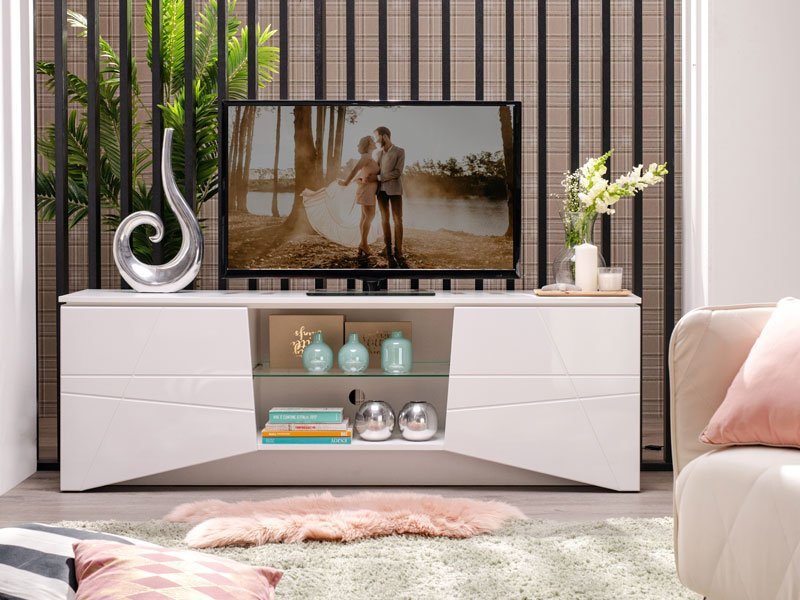 TV polica CADIZ predstavlja kombinaciju opak belog dekora i bele lak folije i svojim izuzetno modernim dizajnom stvara mogućnost unapređenja elegancije i estetskog doživljaja prostorije u kojoj se nalazi. Ovaj inovativni dizajn će biti dodatno istaknut ugradnjom dodatne rasvete. *Napomena: Cena bez rasvete – Mogućnost dodavanja rasvete. Preporučujemo Set LED rasvete Ra21, Set LED rasvete Ra2