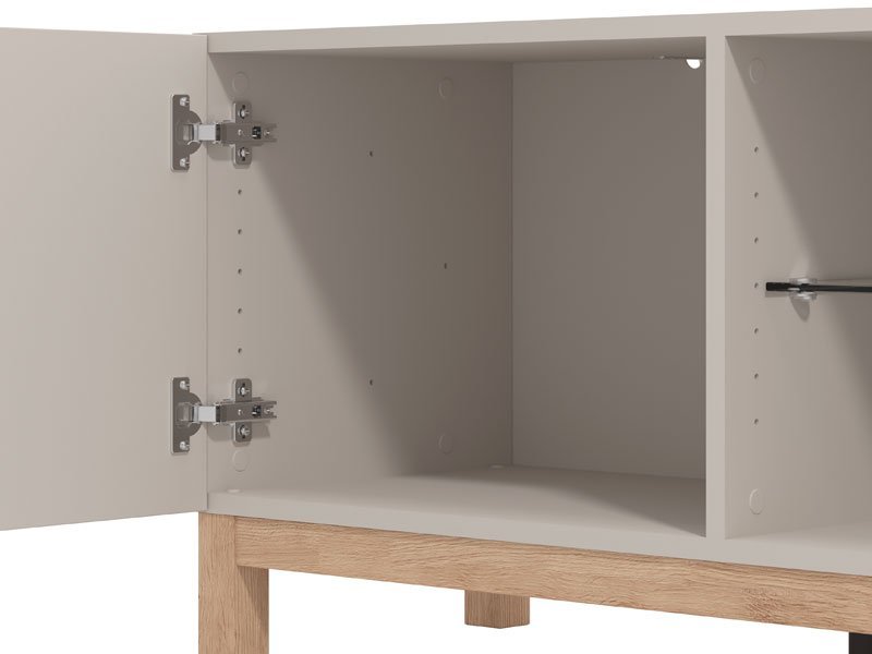 TV polica ESSEX TV 154 3K2V je funkcionalni dodatak za opremanje dnevnog boravka. Atraktivni kašmir dekor donosi u prostor notu elegancije i ambijentalne topline. Dva bočna zatvorena segmenta i otvorene police, efektno doprinose funkcionalnoj organizaciji dnevnog boravka. Deo je istoimenog sistema elemenata za uređenje ambijenta dnevnog boravka, koji predstavlja moderno rešenje za stilizovanje ambijenta doma.