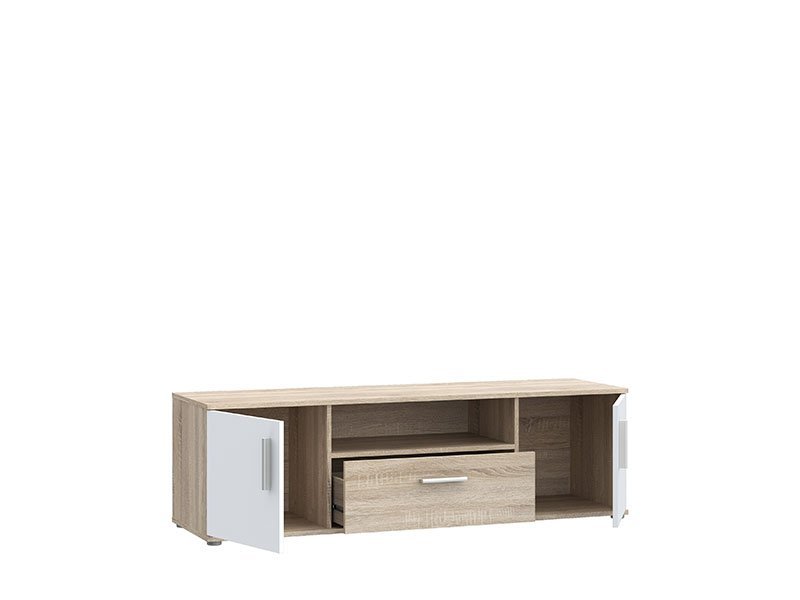 TV policaIKOLIje sjajan funkcionalni dodatak za uređenje ambijenta dnevnog boravka. Kombinacija belog i sonoma dekora unose osvežavajuću estetiku u ambijent. Dva zatvorena segmenta, dve praktične fioke, kao i otvoreni deo, efektno doprinose funkcionalnoj organizaciji dnevnog boravka.