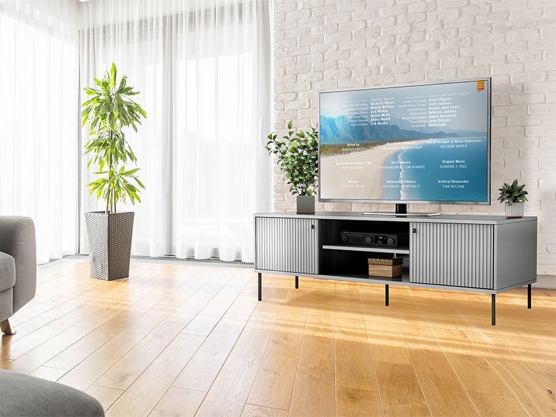 Tačan naziv dezena : korpus/front iverica siva. TV polica IRIS 160 izuzetno je praktičan komad nameštaja za opremanje ambijenta dnevne sobe i u prostor će uneti savremeni stil, eleganciju i autentičnost. Sivi dekor sa aplikacijom ističe savremenost ove TV police, a stilu doprinose i diskretne crne ručice na frontovima. Upotrebni prostor čine dva zatvorena pregradna dela i otvoreni pregradni deo pogodan za audio-vizuelnu opremu.