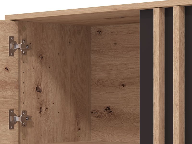 TV polica LAVAL TV 131 2K2V, u kombinaciji artisan hrasta, artisan hrast folije, kao i crnog dekora, deo je istoimene kolekcije koja će doprineti da vaš dom bude opremljen po najnovijim enterijerskim standardima. TV polica LAVAL TV 131 2K2V poseduje dva zatvorena segmenta za odlaganje.