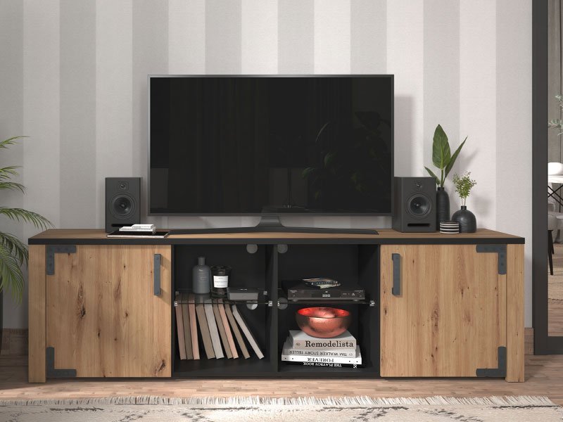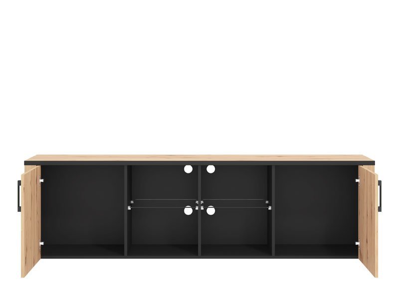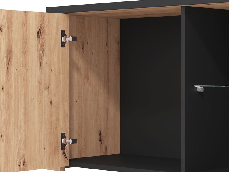 TV polica LAZIO 200 je sjajan funkcionalni dodatak za uređenje ambijenta dnevnog boravka. Dekor artisan hrast hrasta unosi osvežavajuću estetiku u ambijent. Dva zatvorena segmenta, kao i otvoreni pregradni deo, efektno doprinose funkcionalnoj organizaciji dnevnog boravka. *Napomena: Cena bez rasvete – Mogućnost dodavanja rasvete. Preporučujemo Set LED rasvete Ra2