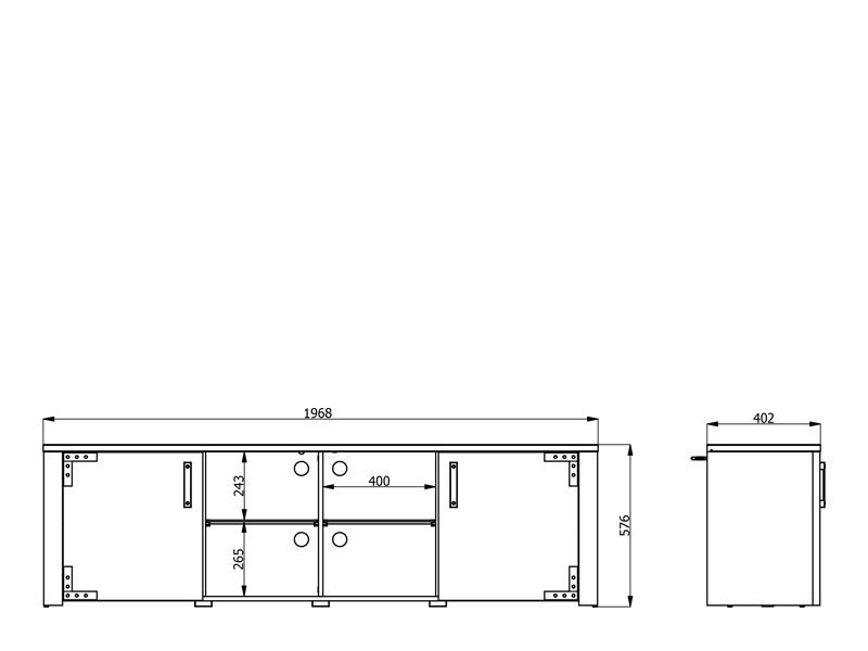 Dimenzije: Širina 197,0 cm x Dubina 40,0 cm x Visina 57,5 cm