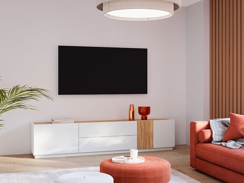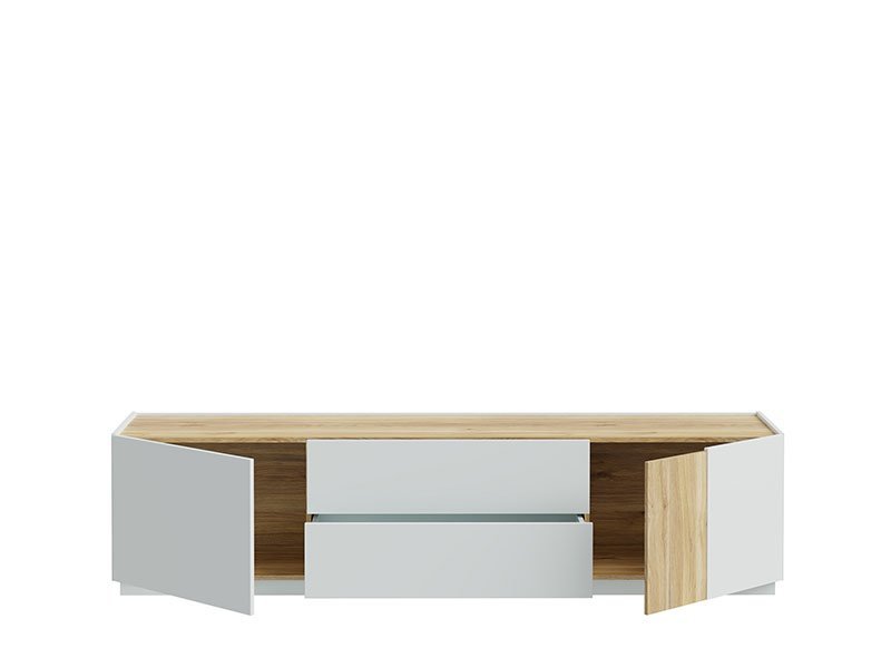 Tačan naziv dezena: konstrukcija iverica Secret grey (U58)/ Mauvella oak (D108), front iverica Secret grey (U58) / Mauvella oak (D108). TV polica LEWISVILLE 200 namenjena je opremanju dnevnog boravka i odlikuje je izražena savremena estetska forma. Funkcionalni je komad nameštaja koji će se idealno uklopiti u vaš ambijent. Upotrebni prostor čine dva zatvorena praktična pregradna dela i dve fioke.