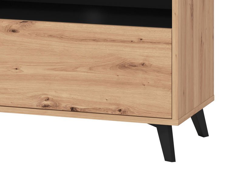 TV polica UMBRIA TV 140, u kombinaciji dekora artisan hrasta i crnog drveta, deo je istoimene kolekcije koja će doprineti da vaš dom bude opremljen po najnovijim enterijerskim standardima. TV polica UMBRIA TV 140 poseduje zatvoren i otvoren segment sa pregradama. *Napomena: Cena bez rasvete – Mogućnost dodavanja rasvete. Preporučujemo Set LED rasvete Ra2