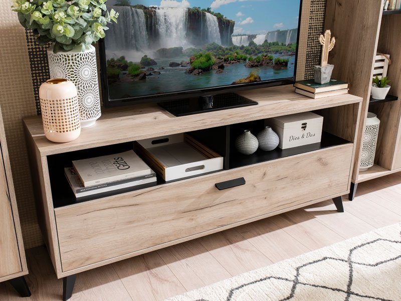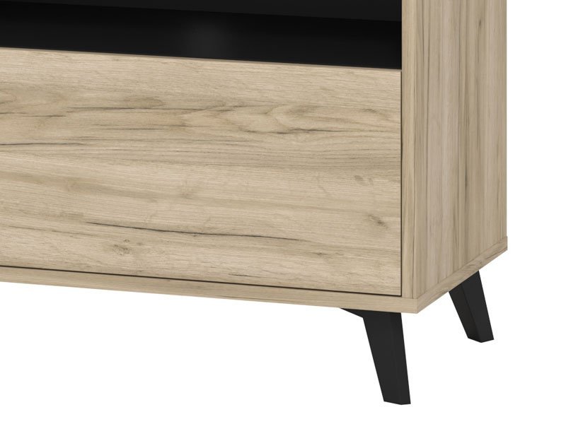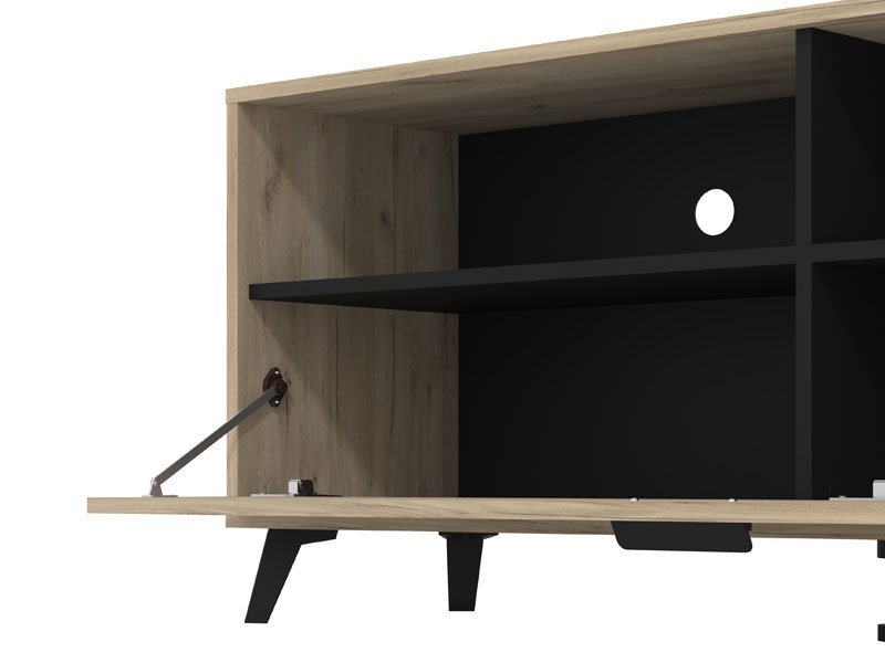 TV polica UMBRIA TV 140, u kombinaciji dekora sivog hrasta i crnog drveta, deo je istoimene kolekcije koja će doprineti da vaš dom bude opremljen po najnovijim enterijerskim standardima. TV polica UMBRIA TV 140 poseduje zatvoren i otvoren segment sa pregradama. *Napomena: Cena bez rasvete – Mogućnost dodavanja rasvete. Preporučujemo Set LED rasvete Ra2