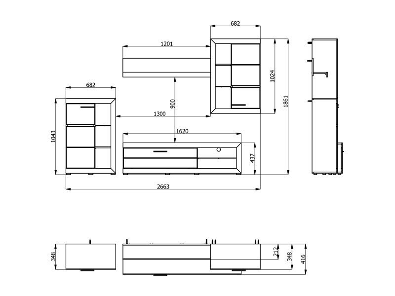 Dimenzije: Širina 266,5 cm x Dubina 41,5 cm x Visina 186,0 cm