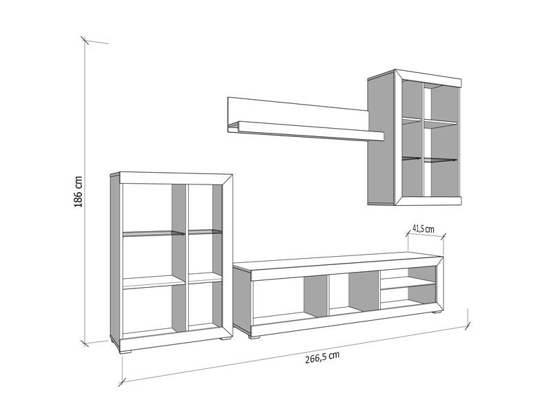 Dimenzije: Širina 266,5 cm x Dubina 41,5 cm x Visina 186,0 cm