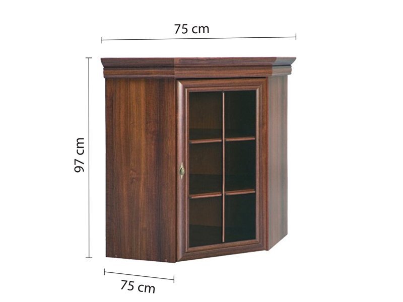 Tačan naziv dezena je: korpus iverica Samoa King, front staklo MDF Samoa King. Ugaona vitrina KORA KNN1 poseduje poluzastakljeni segment i deo je odgovarajuće kompozicije za opremanje dnevne sobe.