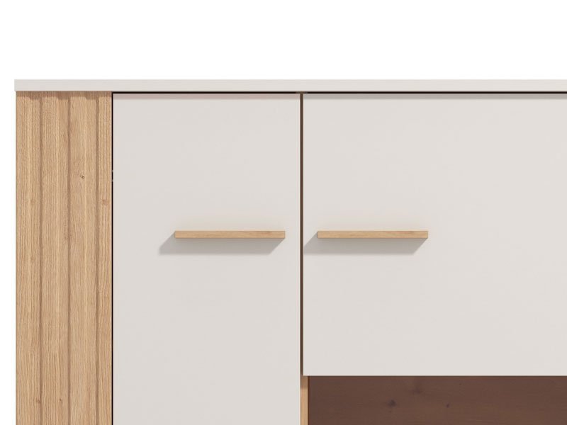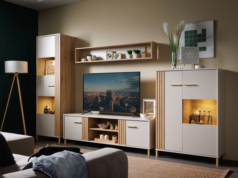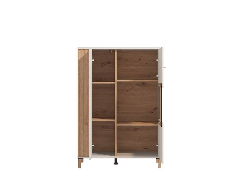 Vitrina BELFORT 2K VS1 je funkcionalni dodatak za opremanje dnevnog boravka. Kombinacija dekora artisan hrasta, kašmira i artisan hrast folije donosi u prostor notu elegancije i ambijentalne topline i sa sofisticiranim stilskim izrazom koji je potreban savremenim enterijerima. Postoji mogućnost dodavanja rasvete. Deo je istoimenog sistema elemenata za uređenje ambijenta dnevnog boravka, koji predstavlja moderno rešenje za stilizovanje ambijenta doma. *Napomena: cena je bez led rasvete. Preporučujemo Set spot svetla 1 SVETILJKA