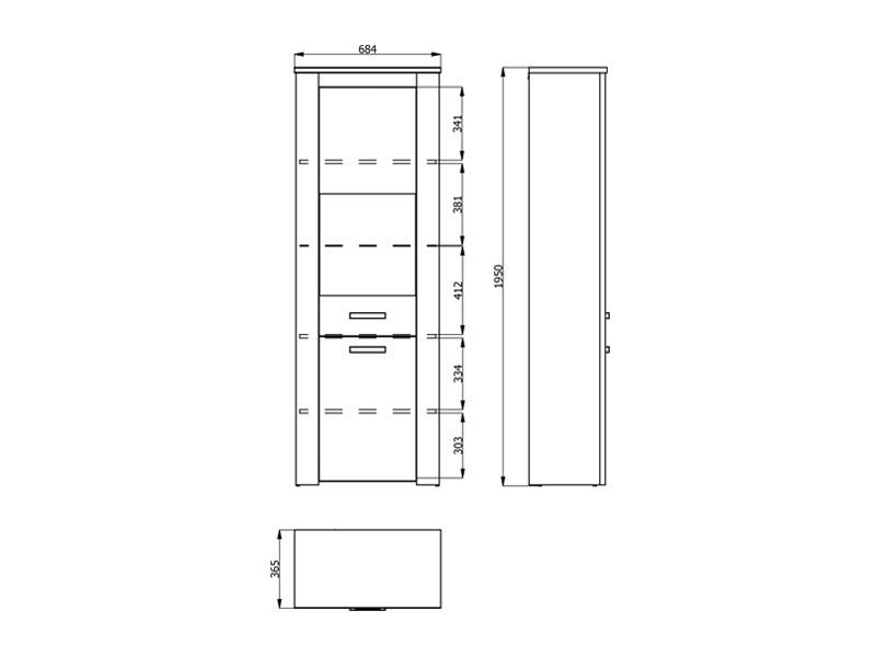 Dimenzije: Širina 68,5 cm x Dubina 36,5 cm x Visina 195,0 cm