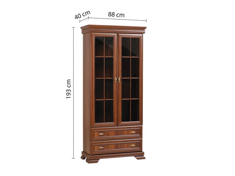 Tačan opis dezena je: korpus iverica braon, front staklo, apl MDF braon. Dvokrilni model vitrine KORA KRW2, sadrži praktične police u poluzastakljenom frontalnom delu, kao i dve praktične fioke. Ovaj model komode deo je odgovarajuće kompozicije za stilizovano opremanje ambijenata dnevne ili spavaće sobe koji teži da ostavi snažan utisak.
