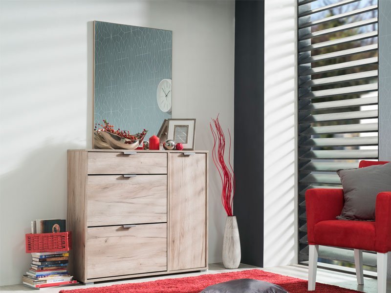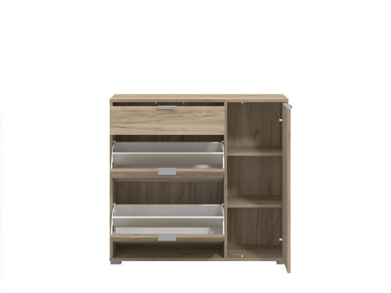 Cipelar ARCO 2, u dezenu sivog hrasta, idealno je rešenje za uklapanje u prostore različitih dimenzija. Ovaj model poseduje dva segmenta za odlaganje obuće, praktičnu fioku i desno pozicioniran deo sa dve police.