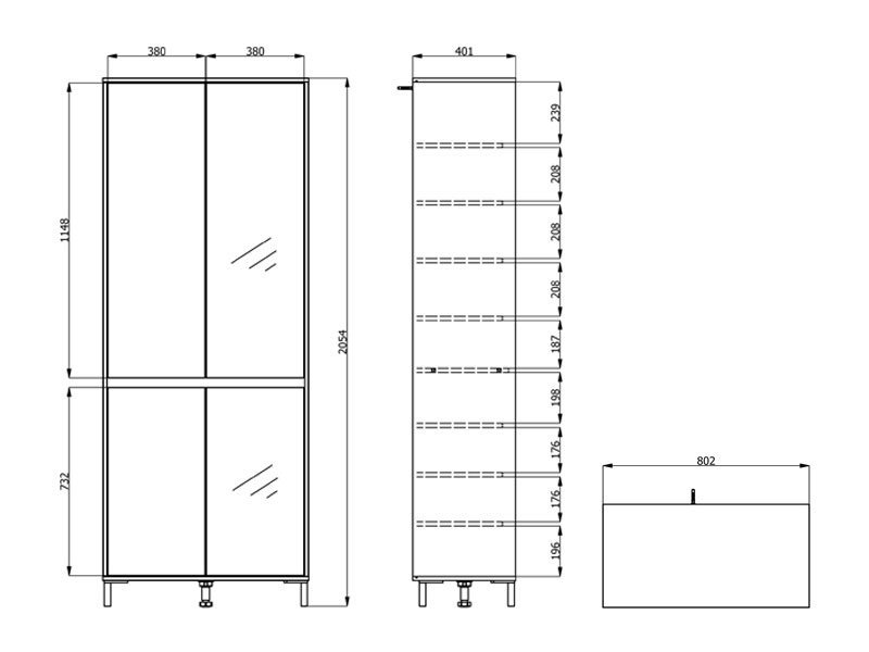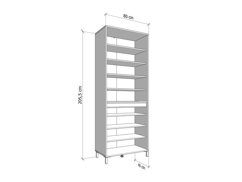 Dimenzije: Širina 80,0 cm x Dubina 40,0 cm x Visina 205,5 cm