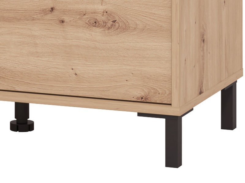 Cipelar FLANNAN 2K4V, u artisan hrast dekoru i detaljima izrađenim od crne mat folije, je moderno i funkcionalno rešenje za odlaganje obuće, koje se može uklopiti i u predsoblja manjih površina, a odgovaraće svakom stilu uređenja doma. Ono što izdvaja ovaj model predsoblja je njegova funkcionalnost. Poseduje 2 dvokrilna zatvorena dela sa policama za odlaganje obuće.