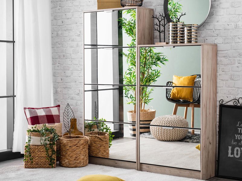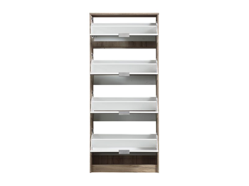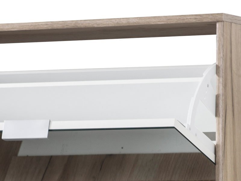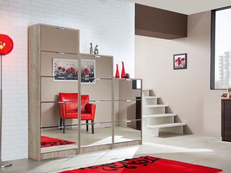 Cipelar HUGO 24 OG, u kombinaciji ogledala i korpusa u dekoru sivog hrasta, poseduje četiri segmenta za odlaganje sezonske obuće, a zahvaljujući svojim dimenzijama i dvorednoj organizaciji, predstavlja veoma efektno funkcionalno rešenje za uređenje predsoblja skromnijih dimenzija.
