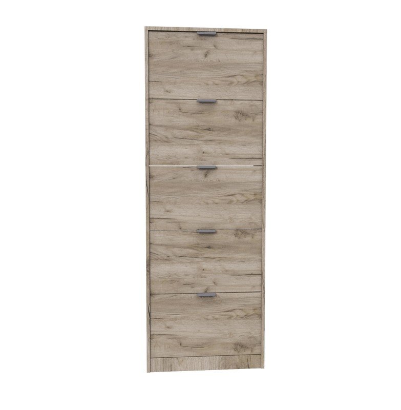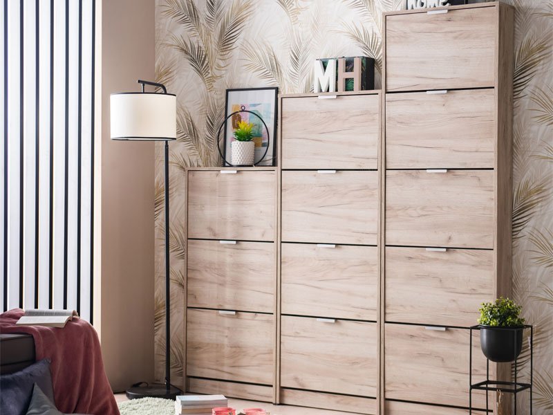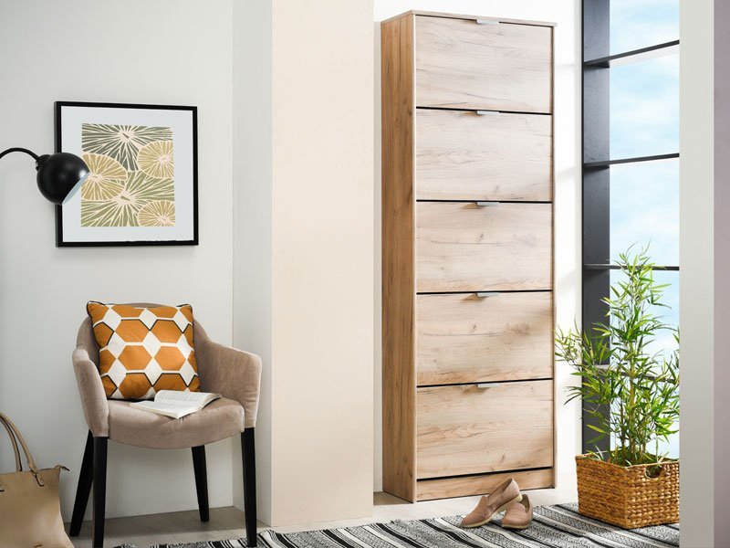 Cipelar HUGO 25, u dekoru sivog hrasta, poseduje pet segmenata za odlaganje sezonske obuće, a zahvaljujući svojim dimenzijama i dvorednoj organizaciji, predstavlja veoma efektno funkcionalno rešenje za uređenje predsoblja skromnijih dimenzija.