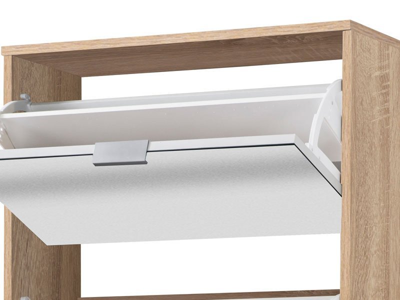 Cipelar HUGO 25 OG, u kombinaciji ogledala i korpusa u sonoma hrast dekoru, poseduje pet segmenata za odlaganje sezonske obuće, a zahvaljujući svojim dimenzijama i dvorednoj organizaciji, predstavlja veoma efektno funkcionalno rešenje za uređenje predsoblja skromnijih dimenzija.