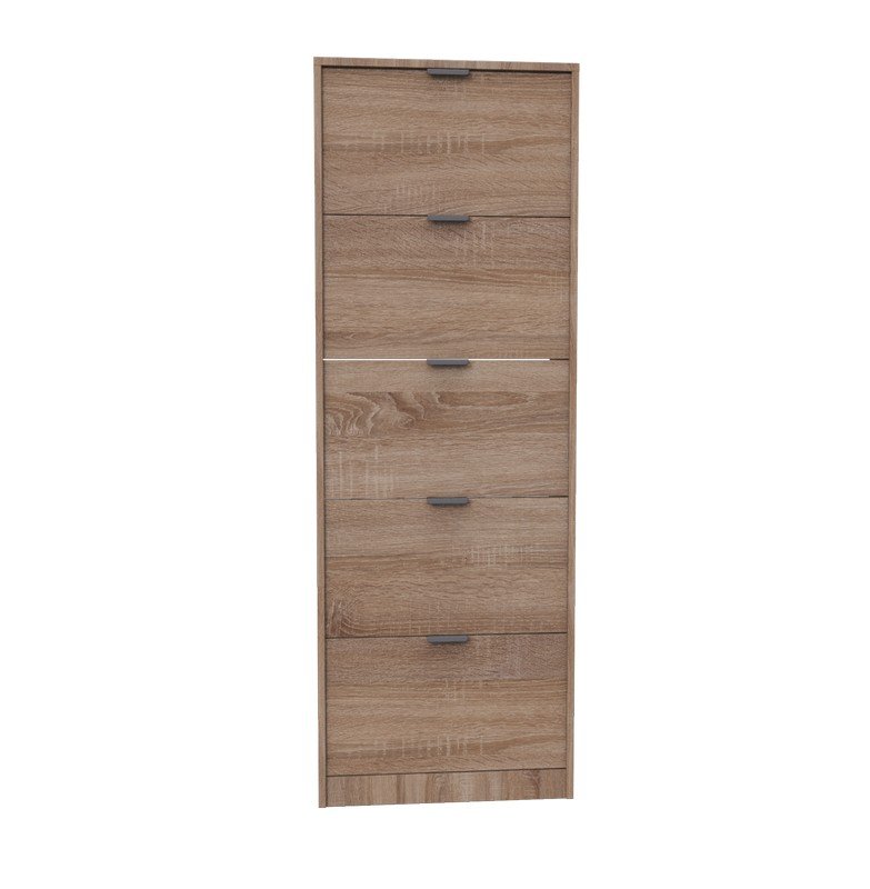 Cipelar HUGO 25, u sonoma hrast dekoru, poseduje pet segmenata za odlaganje sezonske obuće, a zahvaljujući svojim dimenzijama i dvorednoj organizaciji, predstavlja veoma efektno funkcionalno rešenje za uređenje predsoblja skromnijih dimenzija.