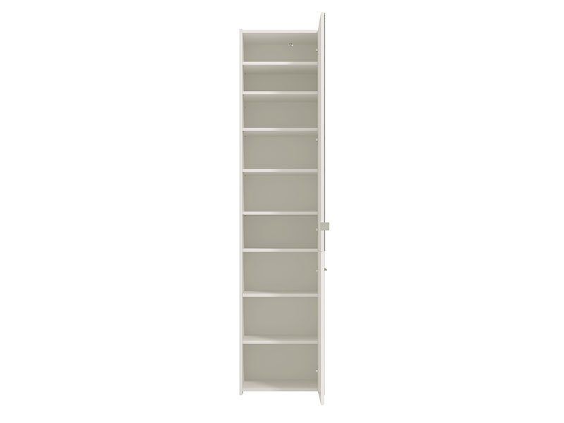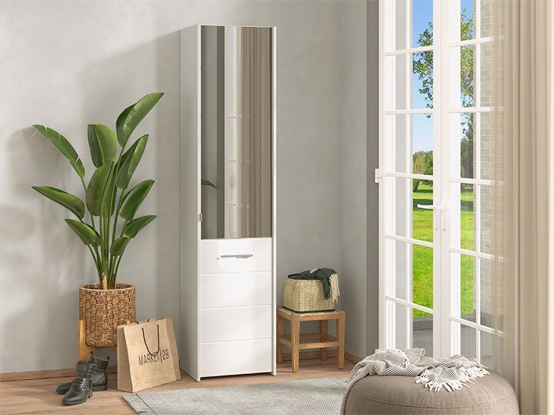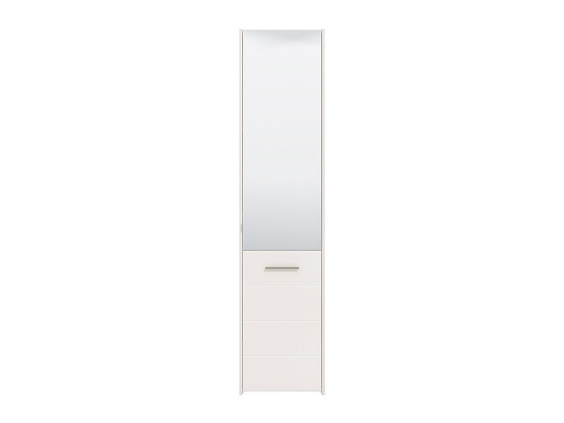 Model cipelara MENORICA 1K OG, u kombinaciji dekora opak bele i bele lak folije, obogaćen je sa praktičnim ogledalom u gornjem delu elementa. U unutrašnjosti se nalaze zatvorene police za odlaganje obuće, koje pružaju mogućnost racionalne organizacije predsoblja.