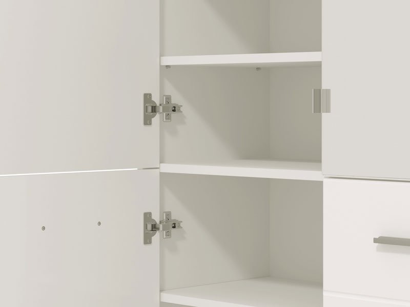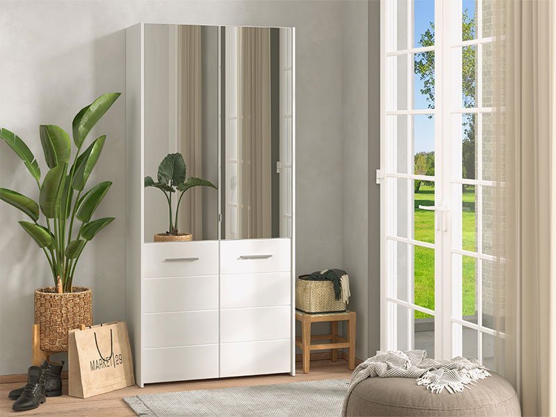 Model cipelara MENORICA 2K 2OG, u kombinaciji dekora opak bele i bele lak folije, obogaćen je sa dva praktična ogledala u gornjem delu elementa. U unutrašnjosti se nalaze zatvorene police za odlaganje obuće, koje pružaju mogućnost racionalne organizacije predsoblja.