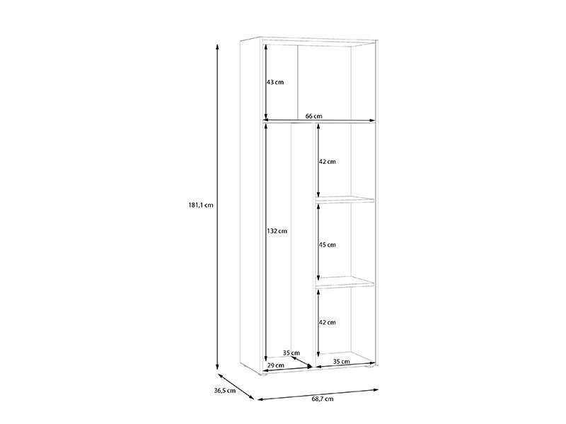 Dimenzije: Širina 68,5 cm x Dubina 36,5 cm x Visina 181,0 cm
