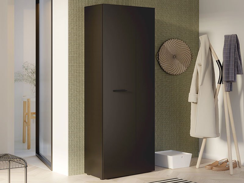 Model cipelara NET OP, u dezenu korpus/front iverica black (Z13), sa zatvorenim policama za odlaganje obuće pruža mogućnost racionalne organizacije predsoblja.