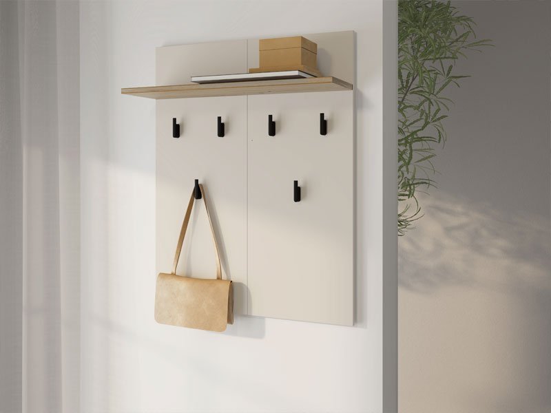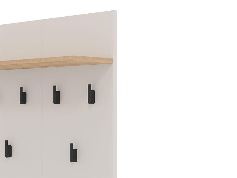 Element predsoblja BELFORT CIV, u kombinaciji artisan hrast i kašmir dekora, uneće u vaše predsoblje praktičnu notu zahvaljujući kačilicama za odlaganje garderobe. Može se kombinovati sa drugim elementima kolekcije za predsoblje BELFORT, koji zaokružuju enterijersku priču ulaza u vaš dom.