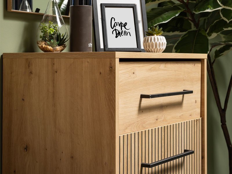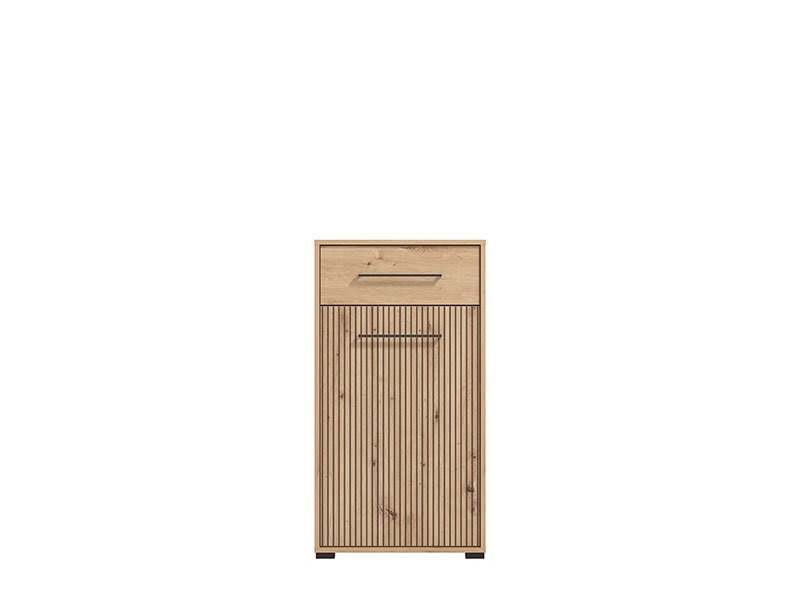 Element predsoblja LANDES 1K1F u kombinaciji dekora artisan hrasta i artisan hrasta sa prugama,  poseduje praktičan zatvoren pregradni deo za odlaganje obuće, kao i jednu fioku. Može se kombinovati sa drugim elementima kolekcije za predsoblje LANDES, koji zaokružuju enterijersku priču ulaza u vaš dom.