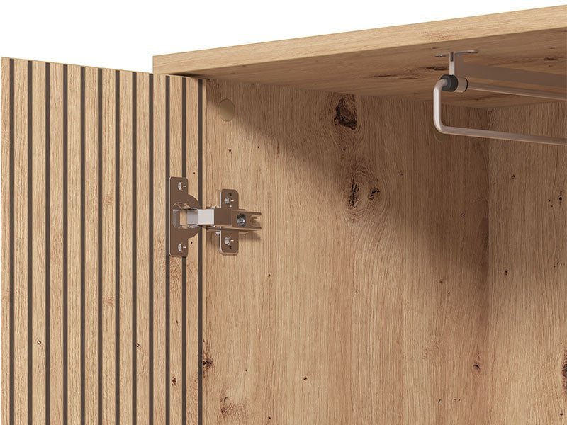Element predsoblja LANDES P1 OG, u kombinaciji dekora artisan hrasta i artisan hrasta sa prugama, poseduje praktičan upotrebni prostor koji se sastoji od dve police za odlaganje obuće i  podesivu garderobnu šipku. Deo je istoimene kolekcije koja će u vaš  dom uneti karakter savremenog stila.