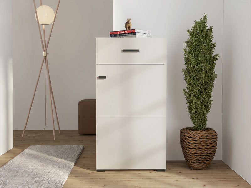 Element predsoblja RATHLIN 1K1F1V, u kašmir dekoru, poseduje praktičan zatvoren deo za odlaganje obuće koji se sastoji od krila sa policama, kao i jednu fioku. Može se kombinovati sa drugim elementima kolekcije za predsoblje RATHLIN, koji zaokružuju enterijersku priču ulaza u vaš dom.