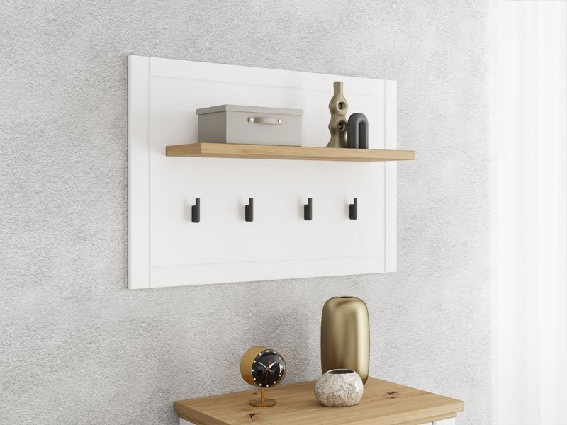 Element predsoblja VALENCIA CIV, u kombinaciji artisan hrasta, opak bele i bele mat folije, spoj je topline rustičnog šarma i ambijentalne ozbiljnosti, koja dolazi kroz pravilne dizajnerske linije. Može se kombinovati sa drugim elementima kolekcije za predsoblje VALENCIA, koji zaokružuju enterijersku priču ulaza u vaš dom.