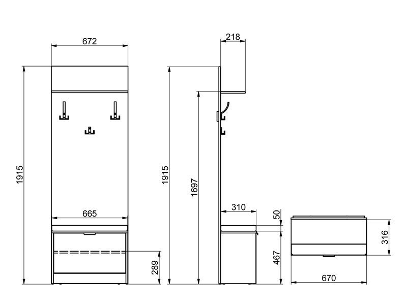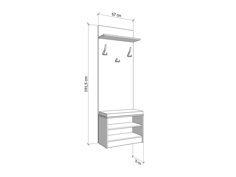 Dimenzije: Širina 67,0 cm x Dubina 35,0 cm x Visina 191,5 cm
