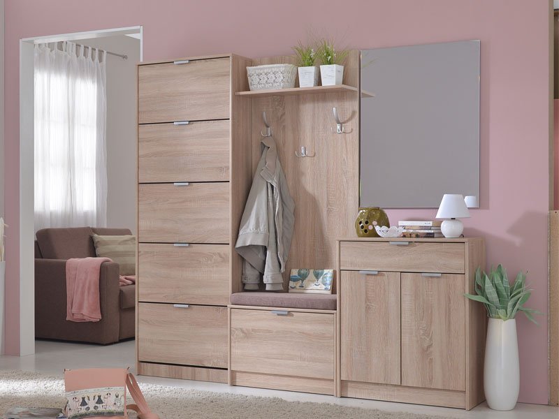 Model predsoblja FLAMENCO, u sonoma hrast dezenu, doprineće potpunom opremanju hodnika. Poseduje tri kačilice, kao i duplu zatvorenu policu za odlaganje obuće. Ukoliko dimenzije u prostoru to dozvoljavaju i potrebe zahtevaju, model predsoblja FLAMENCO može se kombinovati sa cipelarima različitih dimenzija.