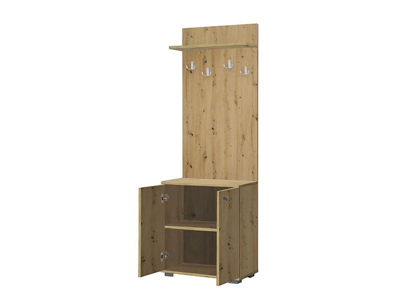 Tačan naziv dezena: korpus/front iverica artisan. Predsoblje GALIJA, u dekoru artisan hrasta, sastoji se iz dva praktična dela koja će vam pomoći da svoju omiljenu obuću i odeću adekvatno odložite.