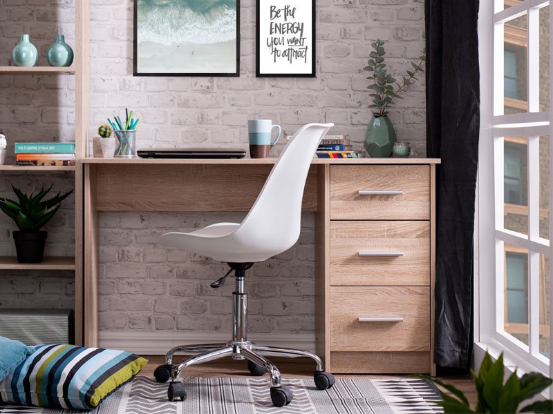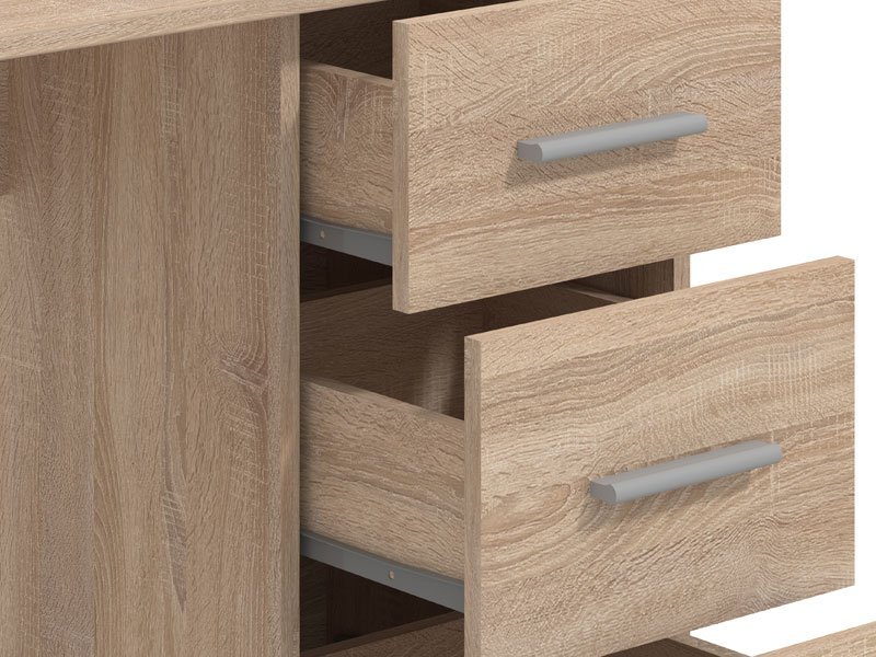 Kompjuter sto LEO, u sonoma hrast dezenu, sa prostranom radnom površinom i funcionalnim sistemom fioka donosi sve neophodno za besprekornu organizaciju radnog prostora.