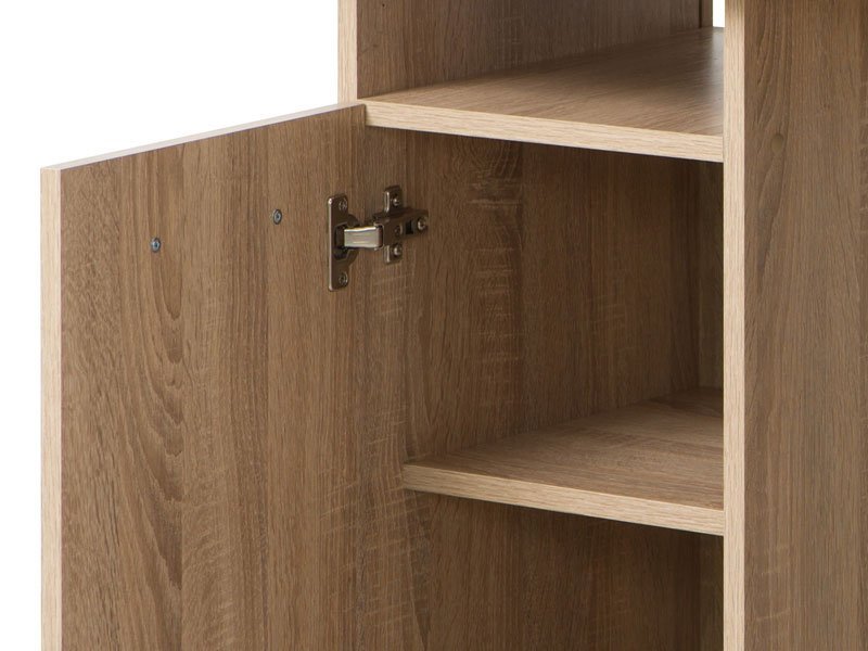 Kompjuter sto REY, u sonoma hrast dezenu, praktično je rešenje za opremanje radnog prostora zahvaljujući skladnom dizajnu i dimenzijama. Ovaj model radnog stola poseduje otvoreni segment i frontalni deo levo pozicioniran sa pregradnom policom.