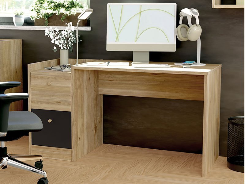 Tačan naziv dezena: korpus iverica Mauvella hrast, front iverica Mauvella hrast/crna. Radni sto COXIM osnovni je detalj savršeno funkcionalnog radnog prostora u kome sve treba da odiše redom i skladnom organizacijom. Praktična kompozicija radne površine, sistema fioka donosi dovoljno prostora za odlaganje i sortiranje važnih stvari i dokumenata.