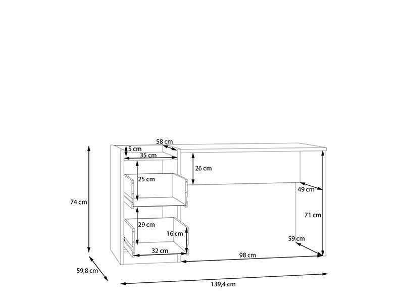 Dimenzije: Širina 139,5 cm x Dubina 60,0 cm x Visina 74,0 cm