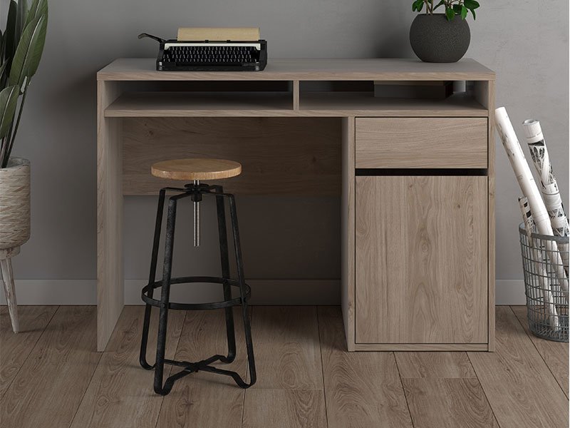 Tačan naziv dezena: konstrukcija/front iverica tamni hrast. Model Radnog stola FUNCTION PLUS 1V1F je stilizovano i funkcionalno rešenje za kompletno opremanje radnog kutka. Upotrebni prostor čine radna ploča sa fiokom i zatvorenim pregradnim delom koje će zadovoljiti i najzahtevnije potrebe za formiranje funkcionalnog radnog okruženja. Doprinosi jedinstvenom estetskom konceptu uređenja životnog prostora.